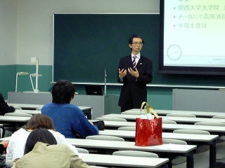 このため、今年度も昨年に引き続き、特許庁・近畿経済産業局の知的財産教育セミナー事業の一環としまして、に講師を派遣して実施するセミナー形式による大学生を対象にした知的財産権に関する授業を実施しました。